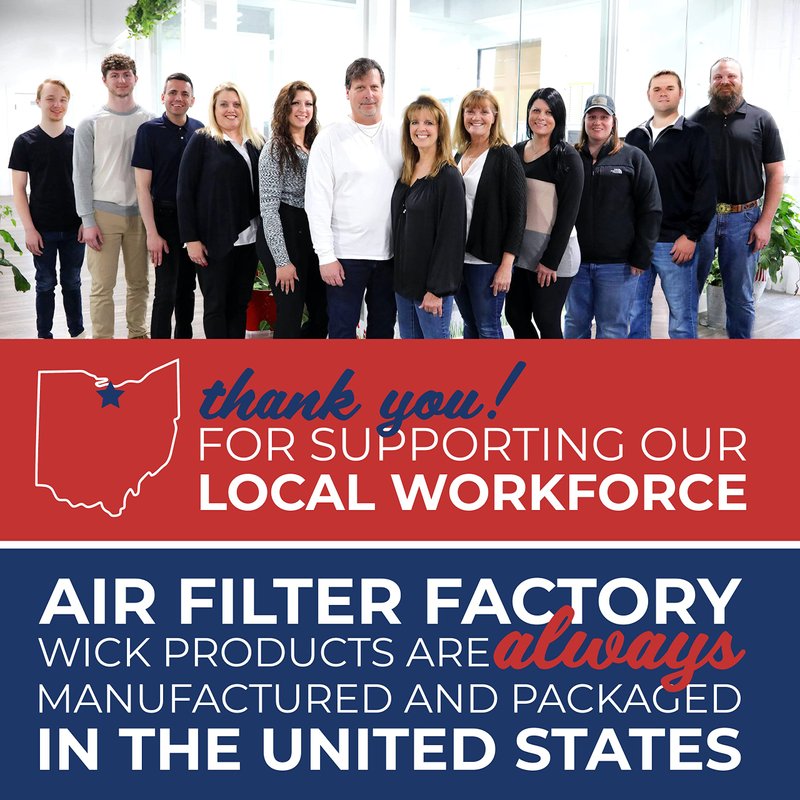 Authentic Air Filter Factory Brand Product UPC 842477100155. This non-OEM replacement wick filter is made in the USA and designed, as well as distributed solely by Air Filter Factory. This is not a OEM product and is not covered under any manufacturer's warranty. The brand name and logos are the registered trademarks of their respective owners. Any use of the brand name or model designation for this product is made solely for purposes of demonstrating compatibility.