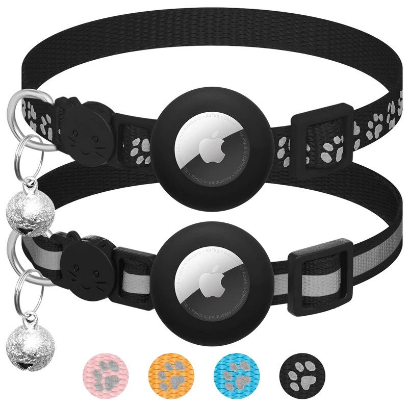 2 Pack Airtag Cat Collar Breakaway with Bell,Reflective Kitten Collar with Apple Airtag Cat Collar Holder,Adjustable 7-12In,Safety Buckle for Girl Boy Cats,Pet Supplies,Accessories,Gifts (Black)