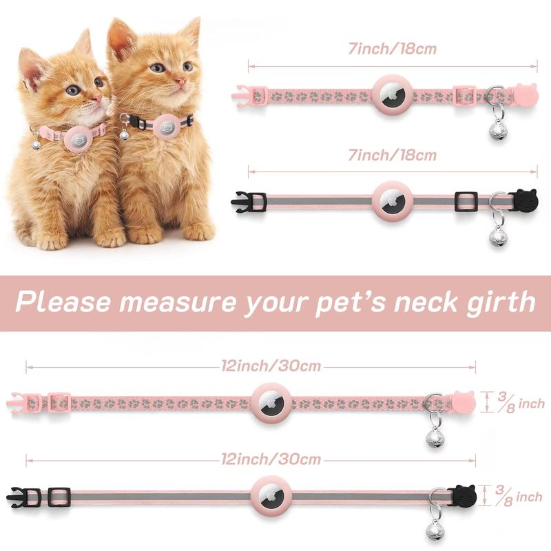 2 Pack Airtag Cat Collar Breakaway with Bell,Reflective Kitten Collar with Apple Airtag Cat Collar Holder,Adjustable 7-12In,Safety Buckle for Girl Boy Cats,Pet Supplies,Accessories,Gifts (Pink)