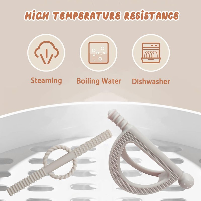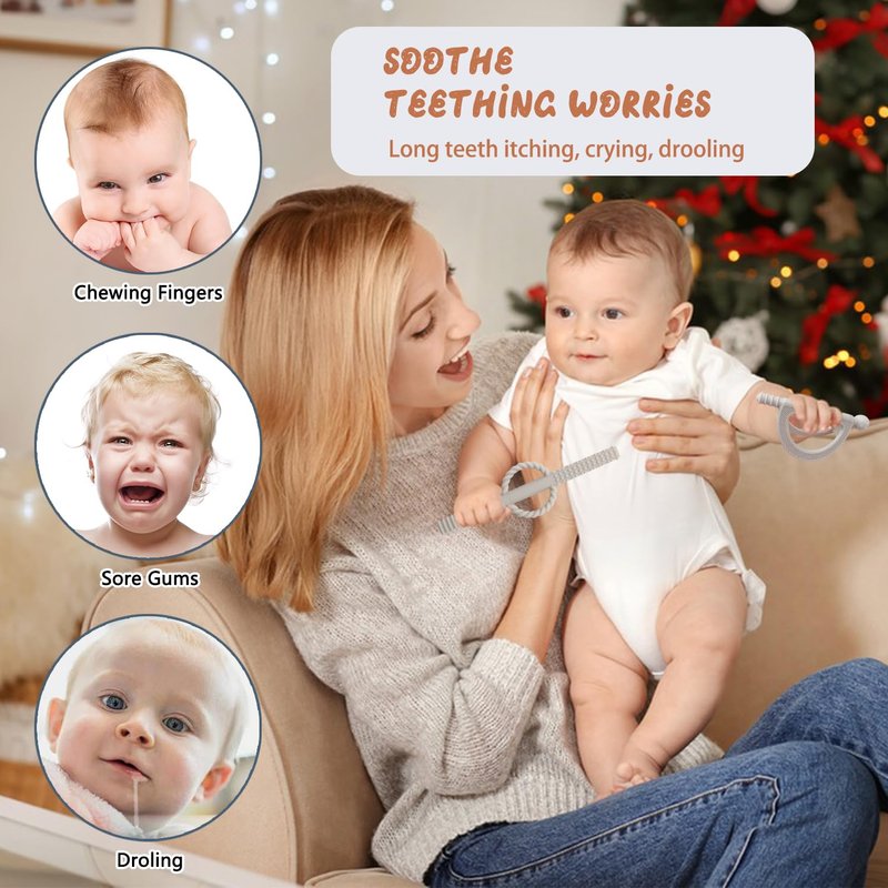 - 1>Soft silicone teethers with several different textures to soothe gums and satisfy babies during teething