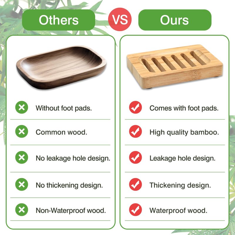- These soap dishes are crafted from high-quality bamboo wood, ensuring long-lasting durability and resistance to daily wear. The natural material keeps the dish looking great while providing a sturdy base for your soap.