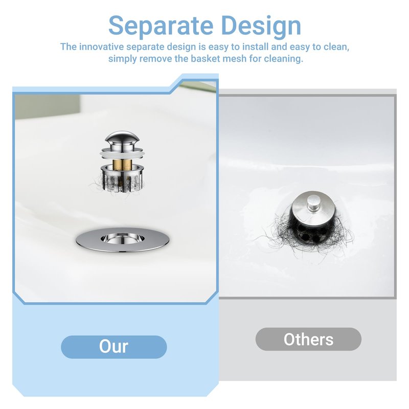 - 【Smart Separate Design for Hassle-Free Maintenance】Featuring an innovative split structure, our tub stopper detaches effortlessly for quick cleaning. Simply lift the filter basket to remove trapped debris—no tools required. Installation takes seconds and fits snugly into most drains.