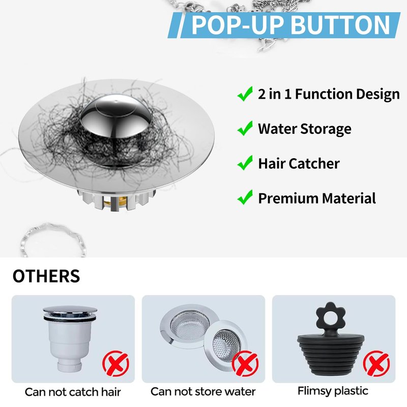 - 【High-Efficiency Filter Basket Design】The precision-engineered mesh basket captures hair, soap residue, and particles before they enter pipes. Its optimized hole pattern ensures smooth water flow while blocking debris, reducing plumbing issues and maintenance costs.