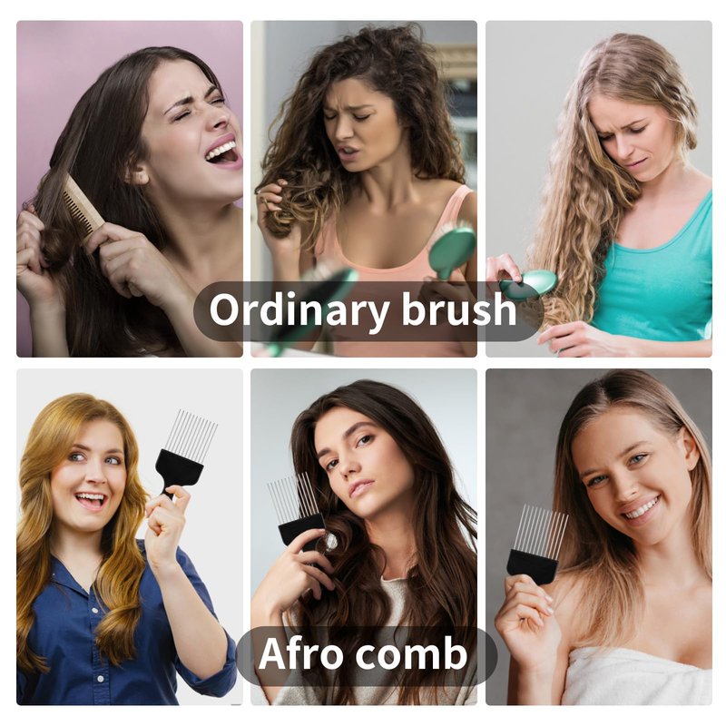 Product Usage: Black metal Afro combs for curly hair, straight hair, tangled hair, detangle braid, Afro braid hairdressing, Afro picks for hair styling can help you create different DIY hairstyles.