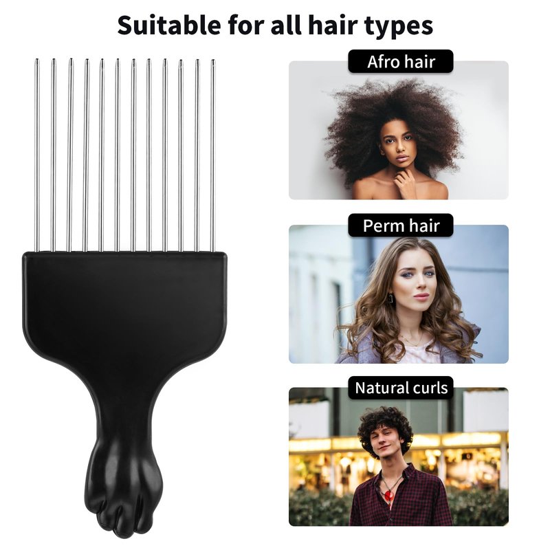 - 【Unique Design】This metal afro picks for curly hair with an eye-catching black fist-shaped handle is especially suitable for curly, thick and easily tangled hair. Pick hair detangles hair effectively and remains comfortable during prolonged use.