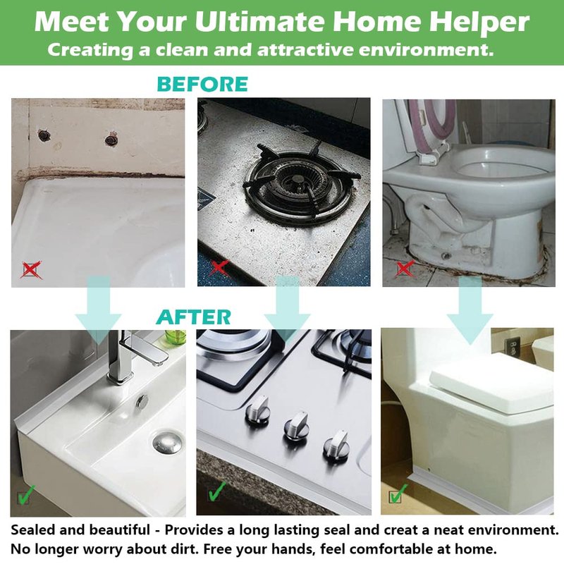 - Wide Application - Super helper at home. Wildly used in sealing the seams of gas stove, sinks, shower,toilet bottom, washbasin,corner joints, window sill and cracks, keep your home clean and tidy. Specially designed for family.