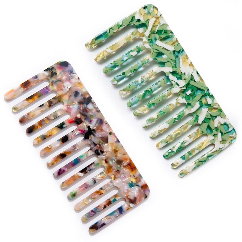 2 Pack Cellulose Detangling Comb - Wide Tooth for Curly, Straight, or Wet Hair - Unisex, Comfortable No Pulling Design