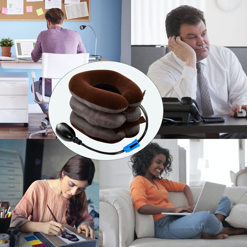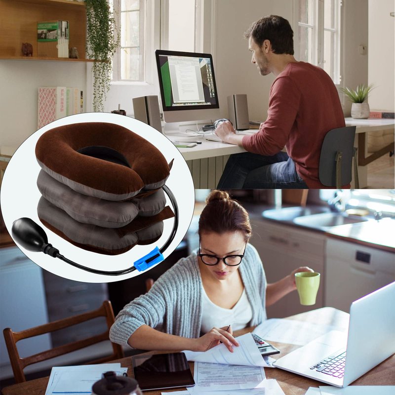 2 Pack Cervical Neck Traction Device Inflatable Collar Brace Adjustable Neck Stretcher Neck Support for Spine Alignment and Chronic Neck Pain Relief(Brown)