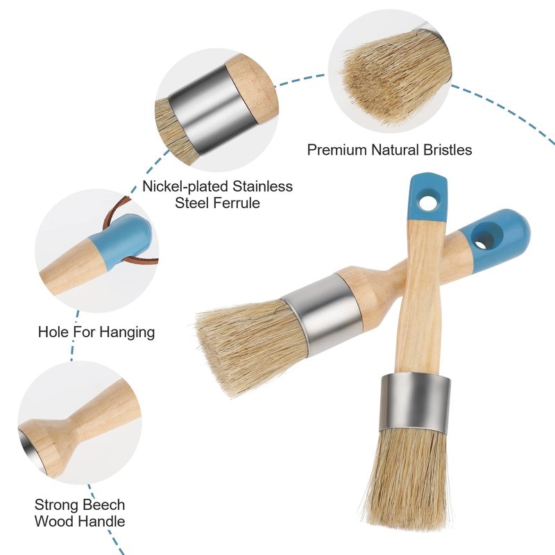 - Paint Brushes Head with Plated Ferrule: Stainless steel ferrules and beech wood handles not only extends the life of the chalk paint brushes, but also adds comfort and beauty.our wax brush chalk paint has highest paint pick and release,paint brushes for furniture painting are long lasting on rough surfaces, achieve quality result
