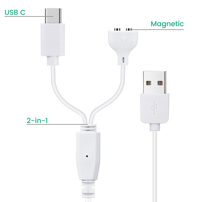 2-Pack Charger Replacement for Delupet and Compatible with Yawpet Dog Training Collar, 2-in-1 Magnetic Charging and USB C Cable, Shock Collar Charging Cord, White