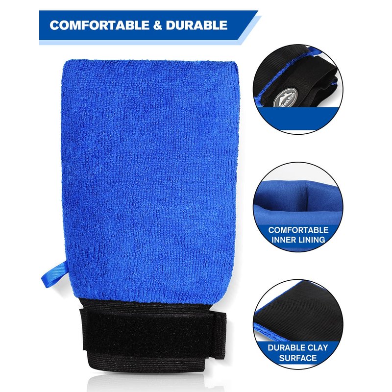 - ★ TIME AND LABOR SAVER --- Special glove design with close-fitting on hand, large effective surface area and no need of kneading, dramatically reduces detailing time and efforts to more than half compared to Clay bar to clay the whole car within minutes.can prevent damage to the shoulders, elbows, arms and hands.