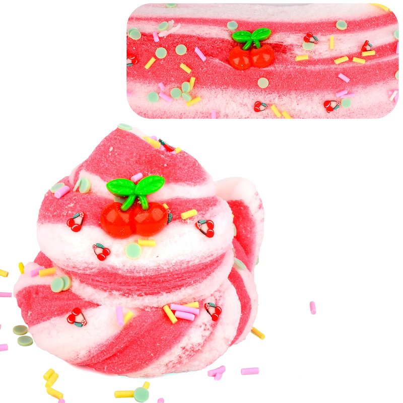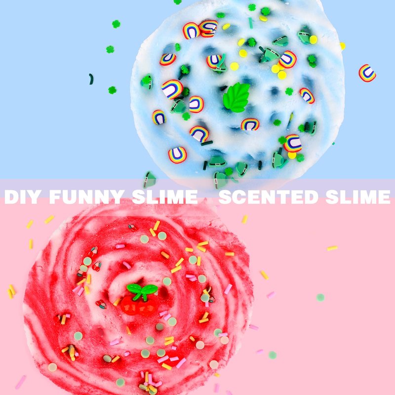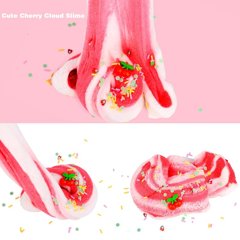 - ♥FUNNY CLOUD SLIME:Upgraded two-color cloud slime kit, red and white color matching, blue and white color matching, increase the fun of color mixing, realistic cherry and mint leaf accessories make the slime look alive, let children fall in love with it at a glance, and immerse themselves in it for hours in the creative fun