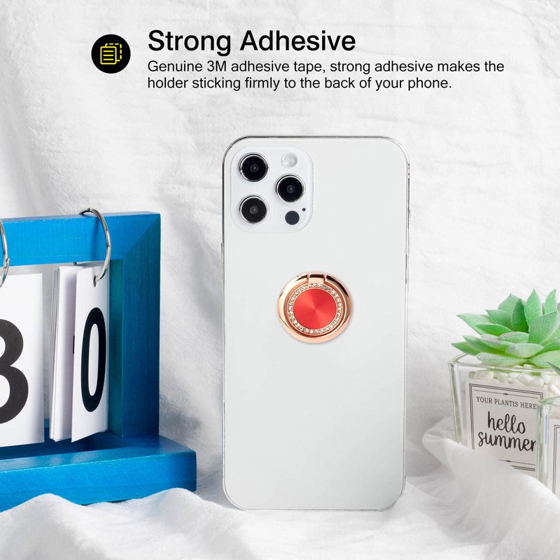 - [Strong Adhesive Finger Ring Grip] With the super strong 3M VHB adhesive pad, this cell phone finger ring grip clings to your smartphone (withstands 5kg gravity test) and prevents accidental drops and slips.3M adhesive pad can be applied to most smooth surfaces, including plastic, metal and TPU.
