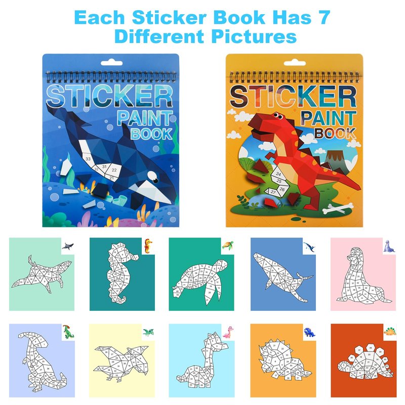 - 【Learning while Playing】These dinosaur and ocean sticker paint books can practice children's hand-eye cooperation and improve their color/number recognition.