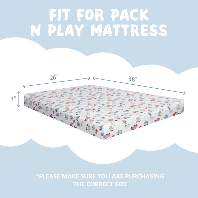 FITTED PORTABLE/ MINI-CRIB SHEET(38"X26"X3") - Our mini crib sheets flexible fit most pack n play mattresses and portable mini crib mattresses. Snug fit with universal size featuring an elastic band, for easy fitting and removal of the crib sheet.