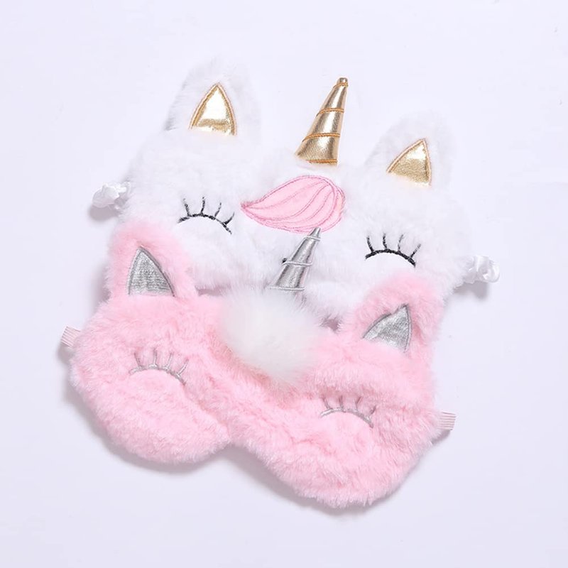 2 Pack Cute Animal Unicorn Sleep Mask for Girls Cute Unicorn Horn Soft Plush Blindfold Sleep Masks Eye Cover for Women Girls Travel Nap Night Sleeping