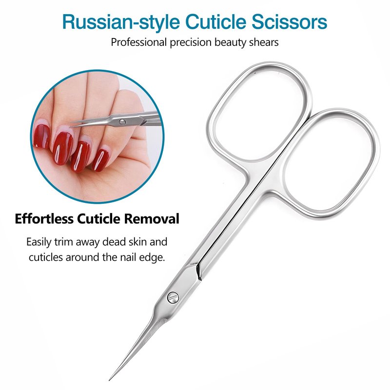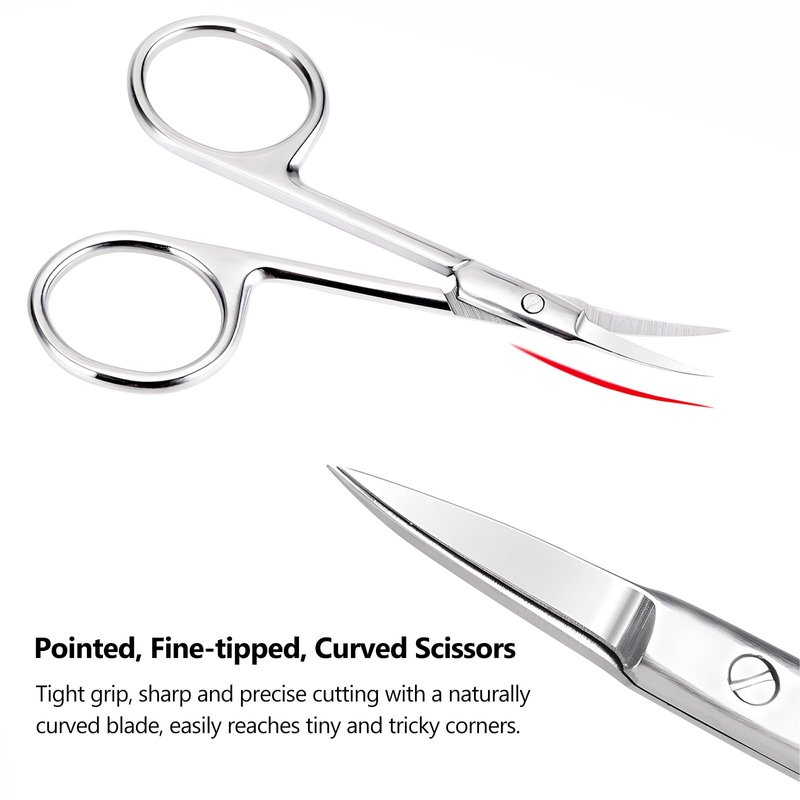 - Curved Blade Cuticle Scissors: Perfect for trimming eyebrows, removing ingrown hair, and tackling dry skin. Also great for hangnail removal and cuticle smoothing; even shapes false lashes and aids in decoupage tasks.