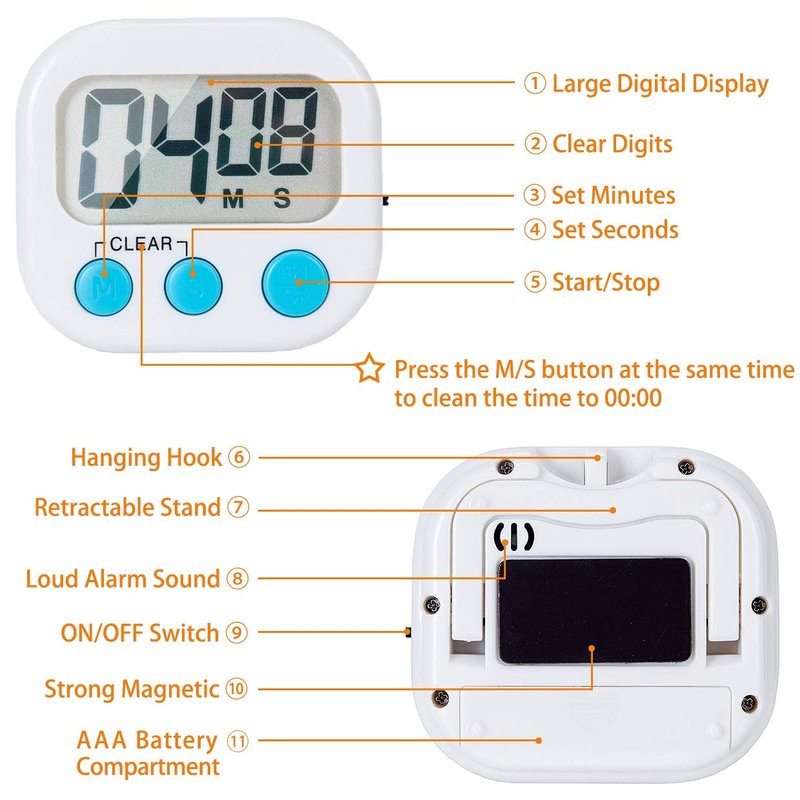 - Kitchen Timers with big buttons, large digital display, loud buzzer and clean bright look(Battery Not Included)