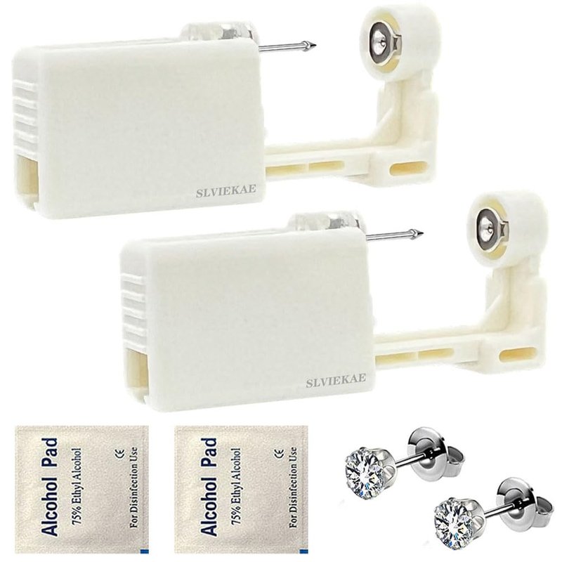- PACKAGING INCLUDES- 2 pcs gun(white) with 2 pcs built-in Earrings and 2 pcs clean swab. Suitable for home or professional store