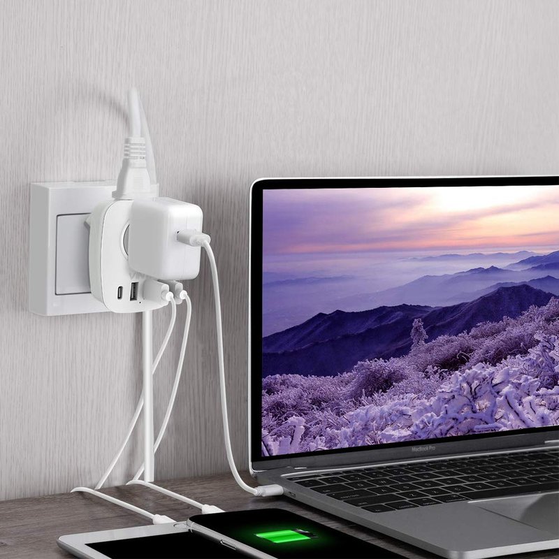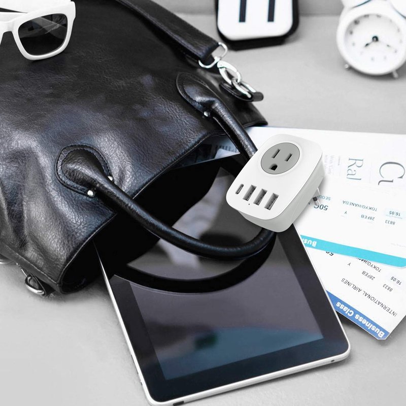 The travel adapter is only 2.8*2.6*2.3 inch and weight 75g. When you traveling abroad, no need to carry heavy power strip.