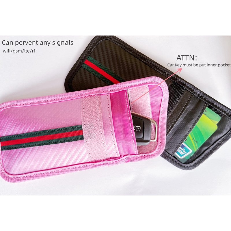 The signal blocking pouch bag is equipped with a metal key chain and a hook and loop fastener seal, which is reliable to use and smooth to touch. And it is convenient to store your car keys, credit cards, debit cards, door cards, pocket money.
