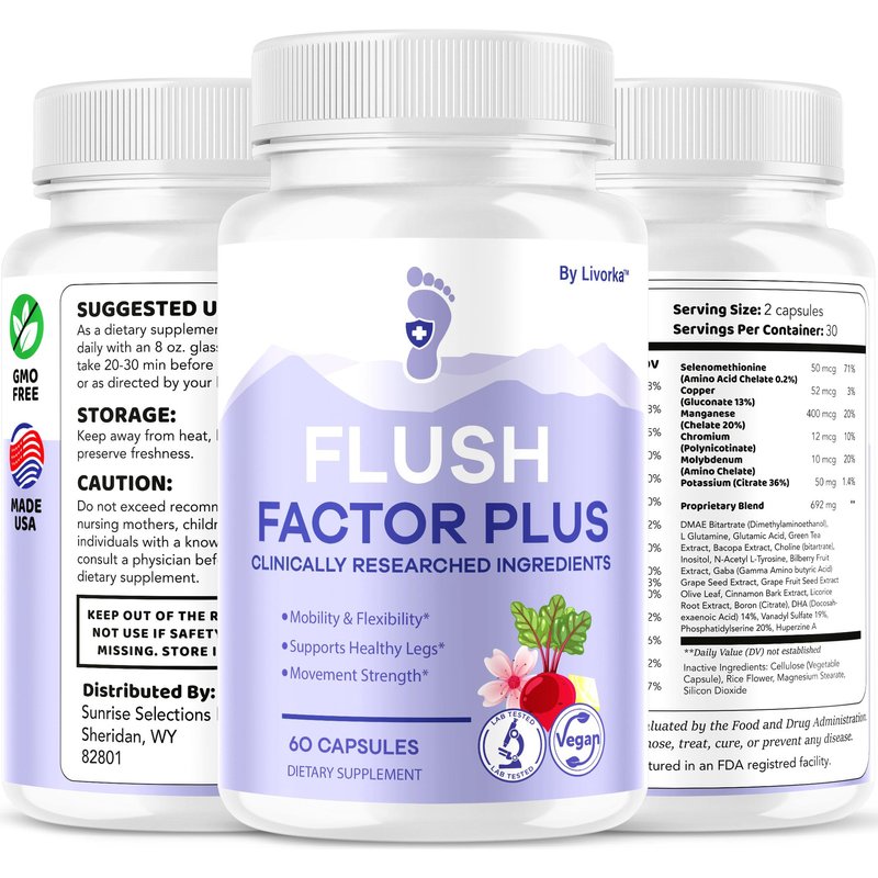 - Flush Factor Plus supports healthy circulation in the legs, providing gentle daily support for comfort and mobility.