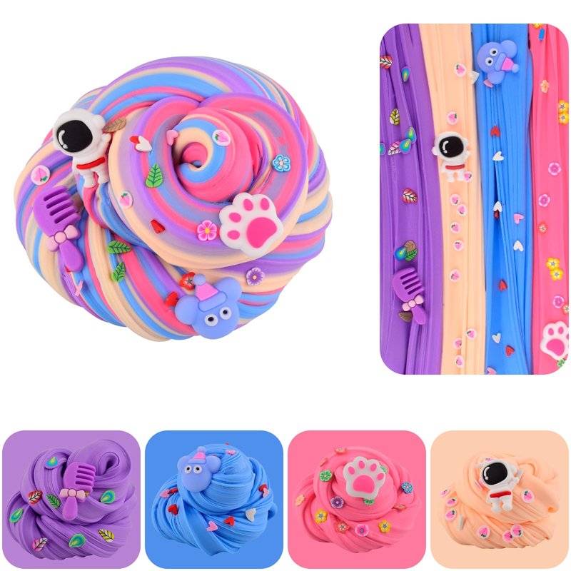 - 🎀【2 Pcs in Package】There are eight colors of butter slime and eight cute charms, with various gadgets inside the package. Good slime for kids party.