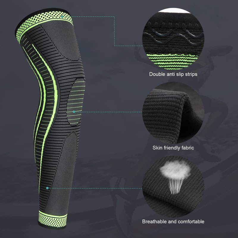 2 Pack Full Leg Compression Sleeves, Long Knee Brace Support for ACL,PCL, Meniscus Tear, Arthritis, Tendinitis, Joint Pain Relief, Men And Women (Small, Green)