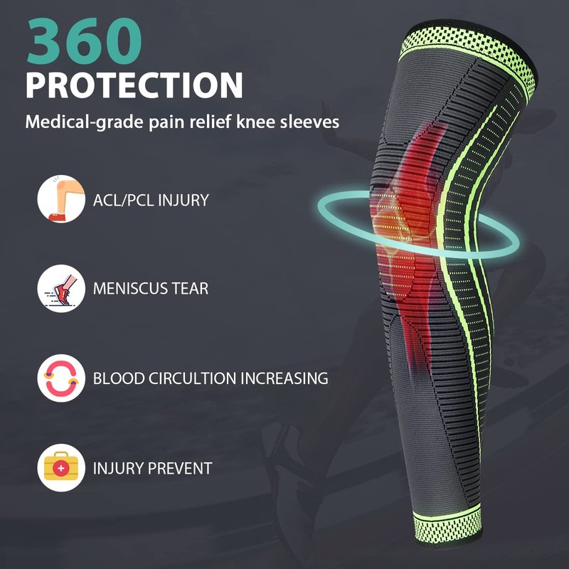 - Breathable and Durable: Our knee brace are made in premium moisture wicking fabric, the elastic full leg sleeves will keep you breathable and comfortable all day