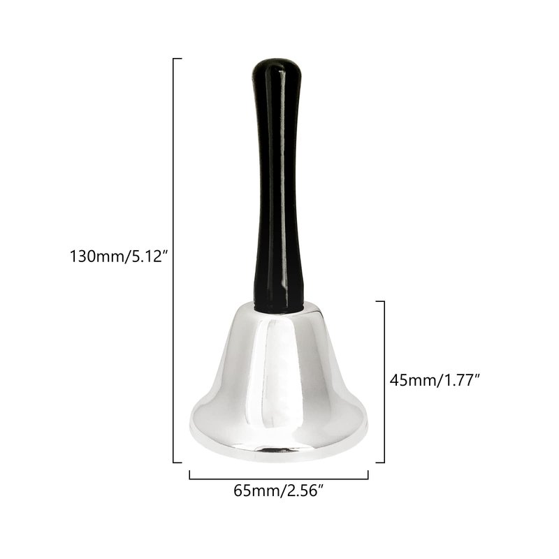 - Product includes 2 pack hand bell, 2.56" diameter, 5.12" height, silver bell, black handle, classic style.