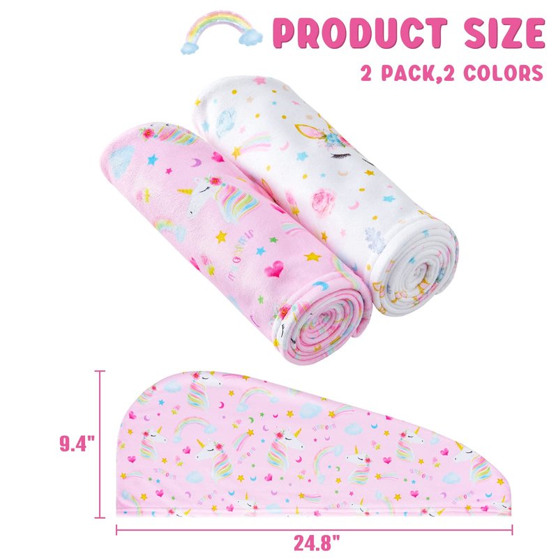 - UNIQUE DESIGN: Our Microfiber Hair Drying Towel is bright in color with cute unicorn print pattern, durable and not easy to fade, suitable for women and girls.