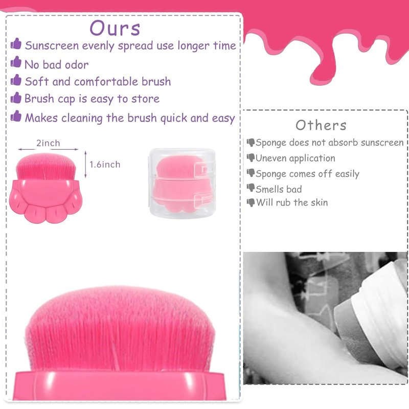 - Widely Applicable: Ideals for families use, applying sunscreen with both hands when in outdoor,not only difficult to spread, but also easy to dirty hands, with this sunscreen applicator can be the perfect solution to the problem, the handle is comfortable to grip, you can controls the application effect accurately and reduces the mess, in addition, the brush can also be used to apply others cosmetics.