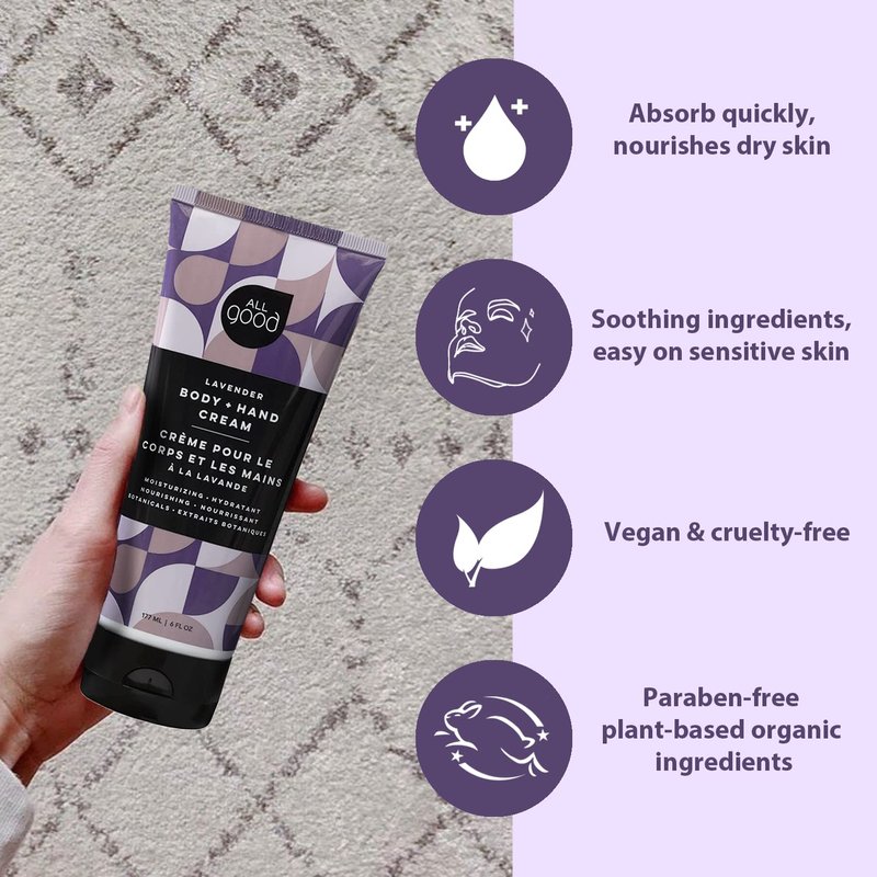 - SMOOTH, CREAMY, NON-GREASY GLOW: For a daily moisturizer, it’s important to know that the ingredients you’re absorbing will do no harm. Our All Good Body & Hand Cream moisturizes dry skin for a youthful,non-greasy glow. Blended into the perfect creamy consistency – not too thick, not sticky, not watery – juuuuuust right.