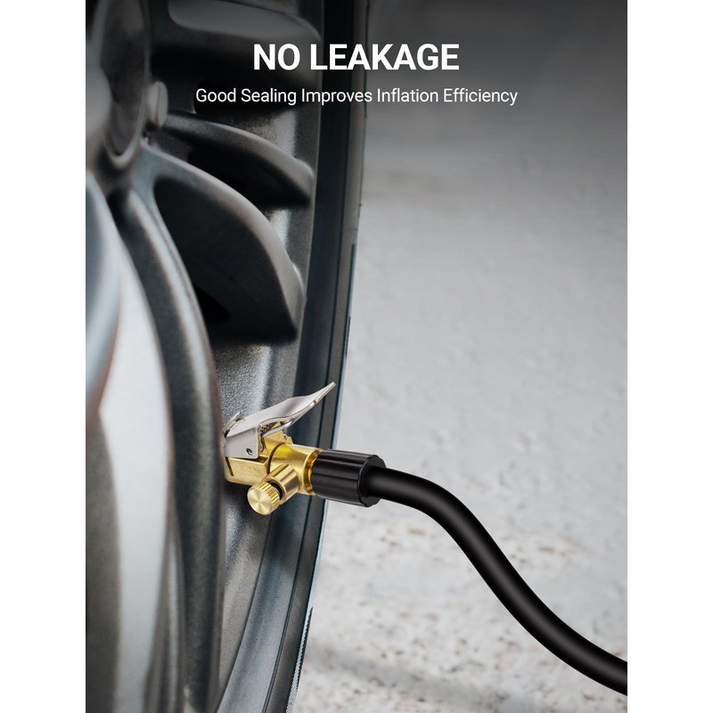 【Quick to Inflate & Deflated】Screw on this premium open flow tire chuck adapter into tire inflator's hose end, then clip it onto tire valve stem, strong hooks on and easy depress make it a perfect no air leaking and quick efficiency inflating.