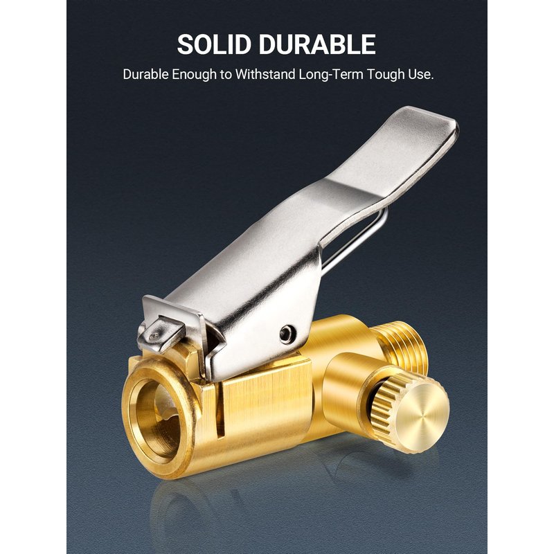 2-Pack Locking Tire Air Chuck, Brass Tire Inflator Hose Adapter w/Clip Adapter & Release Button for Lock On, No Leakage Air Compressor Pump Clip On Tire Chuck Nozzle Adapter Connect Accessories Tool