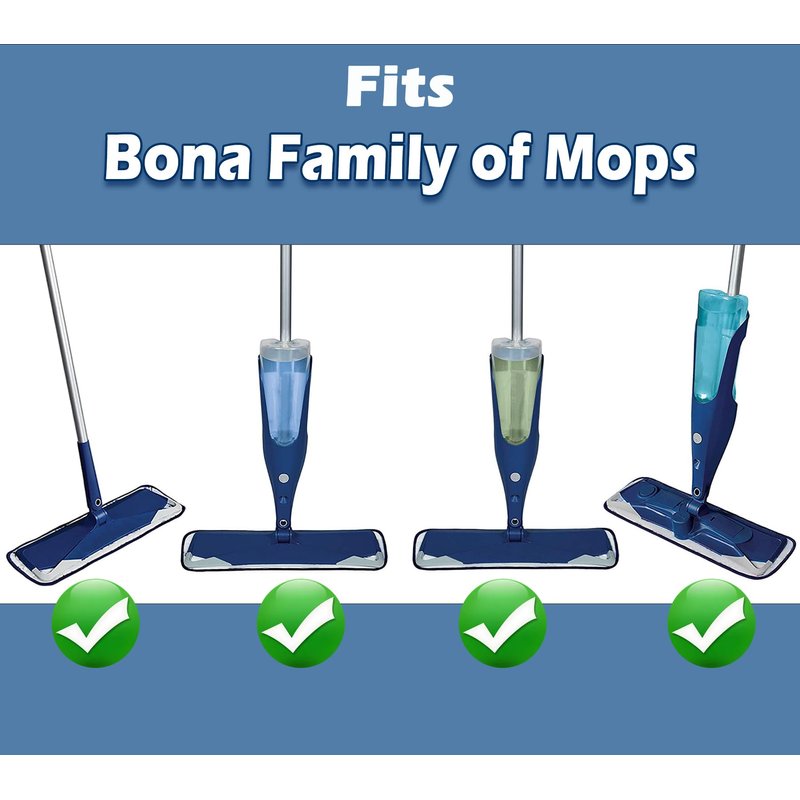 - Microfiber mop pads compatible with Bona Family of Mops, like hardwood floor mop and spray mop.