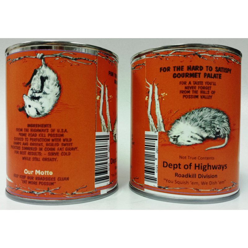 Creamed Possum is a Southern delight from the deep South where you had to eat what you could during the tough times. Our gag gift can of Creamed Possum pays tribute to that era, and all we can say is thank goodness we don't have to eat it anymore- even though it sounds darn tasty with garnished sweet p'taters and ramps. (greens) The Coon Fat gravy just puts this dish over the top! Note: gag gift only, contains composted organic material. Not edible.