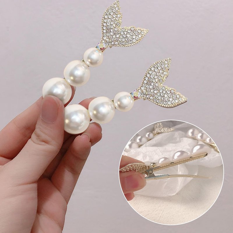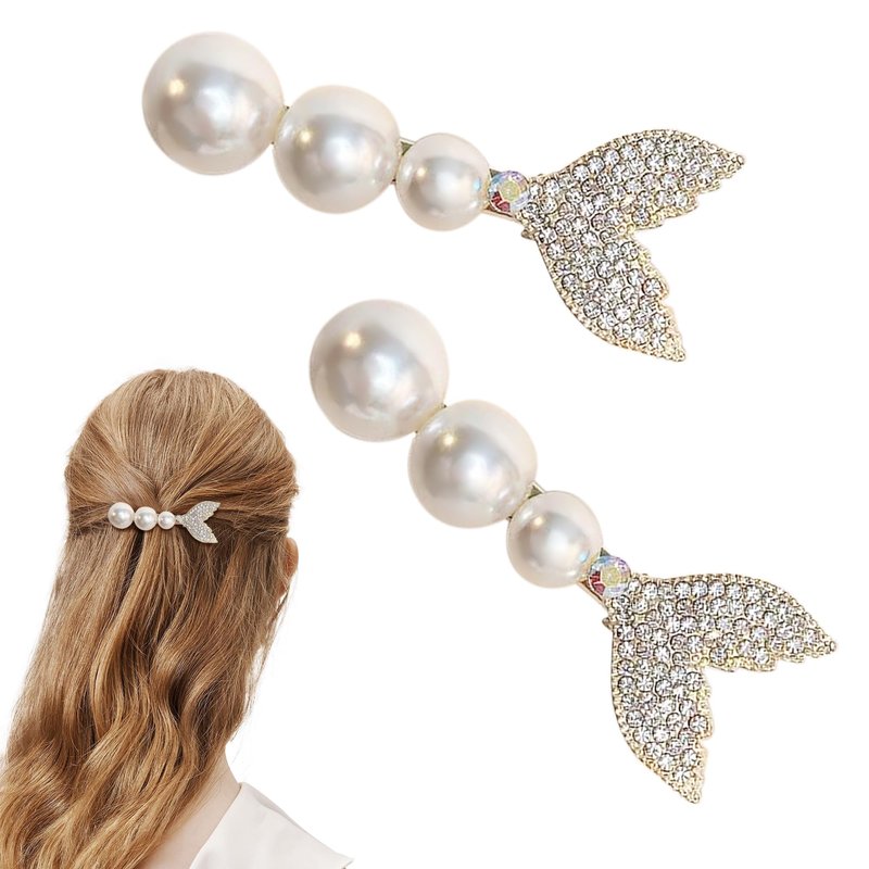 Each hair clip is thoughtfully designed, drawing inspiration from the graceful shape of a fishtail, adding a unique touch to your hairstyle. The combination of white imitation pearls and golden alloy creates a timeless aesthetic that effortlessly complements any outfit, from casual ensembles to formal attire.