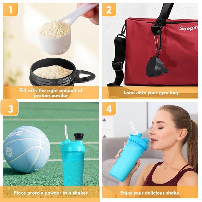 - 【Mess-Free Dispensing】: This protein powder funnel accurately pours protein powder into shakers or water bottles without making a mess. Simply open the cap at the bottom of the funnel, rotate the funnel and fill the shaker or water bottle to easily transfer the supplement without any spillage or waste.