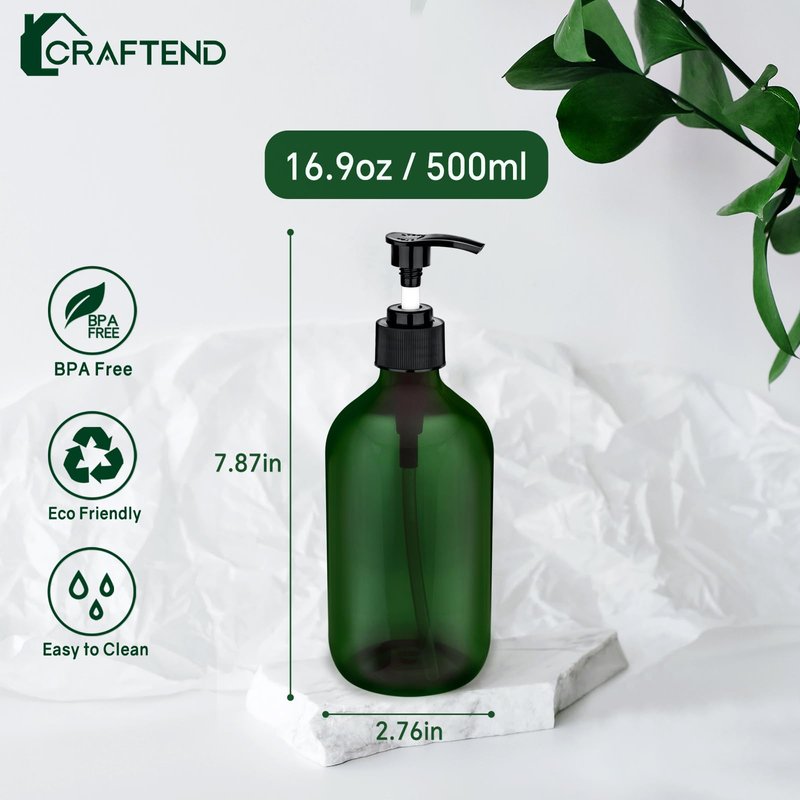 - Premium Soap Dispenser: Made of high-quality PET Plastic which is lightweight and durable. Different from glass, plastics never breaks which is also safe to keep all kinds of liquids. The capacity is 16.9 oz 500 ml.