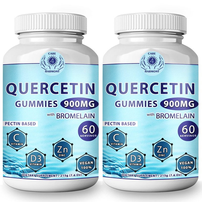 (2 Pack) Quercetin Gummies - Quercetin with Bromelain Vitamin C + Zinc Vitamin D3 – Chewable Quercetin 900mg Supplements - Quercetin for Kids and Adults (2)