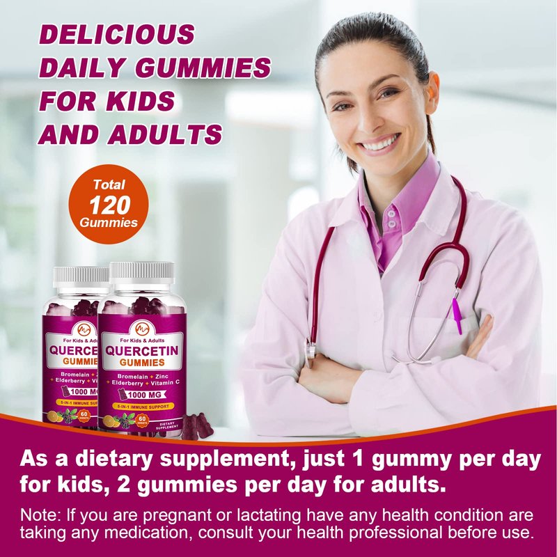- Immune Support Quercetin Gummies for Adult & Kids: These quercetin gummies also include essential nutrients bromelain, vitamin C and zinc, giving you four times the action for immune support