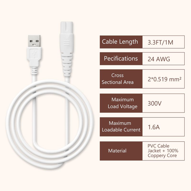 GnoTis Charging Cable Designed for Pritech Electric Feet Callus Removers BCM-1138, Fast Charging, Use Pure Popper Material to Talking into Account The Wear Resistance and Deformation, Anti-Aging Performance and Durability.