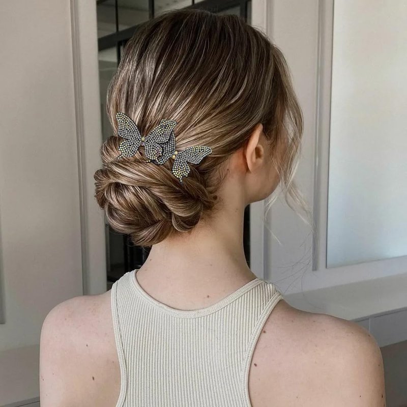 2 PACK Rhinestone Butterfly Hair Bun Maker, Elegant Lazy Hair Curler, Rhinestone Hair Bun Maker, French Hairstyle Twist Bun Maker, Elegant Hair Accessories For Women Girls