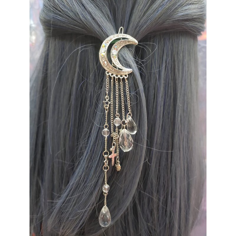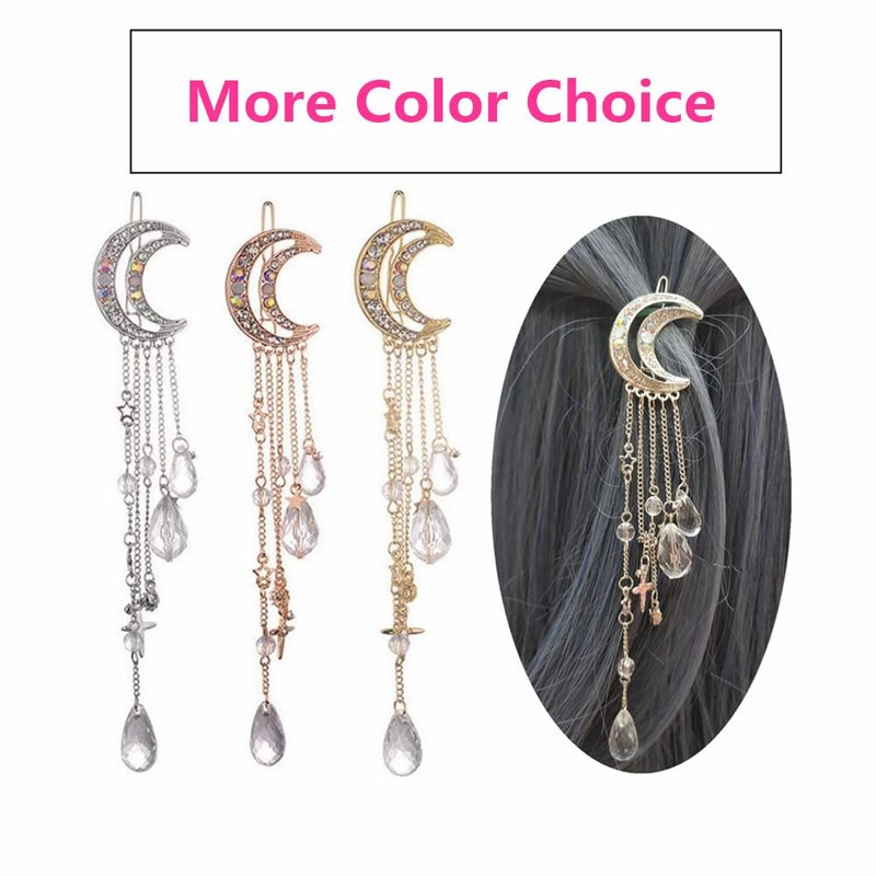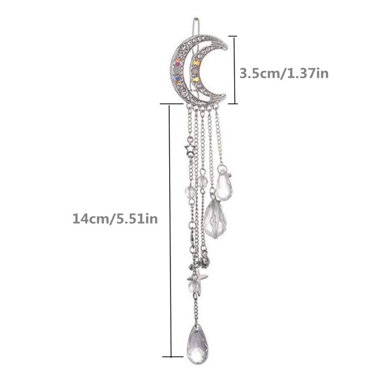 Features: Moon Shape, Rhinestone Inlaid, Tassel Beads Dangle, Hair Accessory