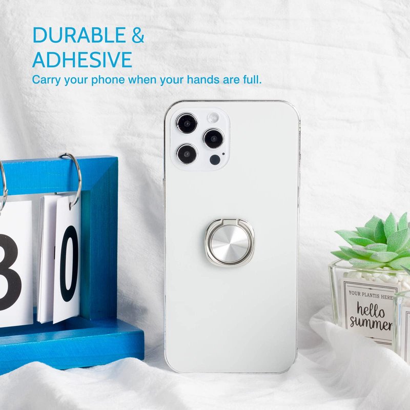 - [Strong Adhesive Finger Ring Grip] With the super strong 3M VHB adhesive pad, this cell phone finger ring grip clings to your smartphone (withstands 5kg gravity test) and prevents accidental drops and slips.3M adhesive pad can be applied to most smooth surfaces, including plastic, metal and TPU.