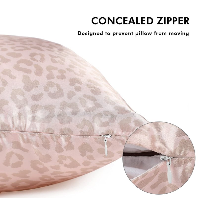 2 Pack Satin Pillowcase with Latent Zipper, Adjustable Satin Eye Mask for Sleeping and Satin Volume Scrunchie for Hair and Skin, Standard Size (Pink, Leopard Style)