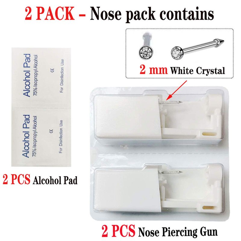 - Unique Design- Each unit consists of a ONE TIME USE nose-piercing kit with a built-in nose stud without clasp for more comfort.