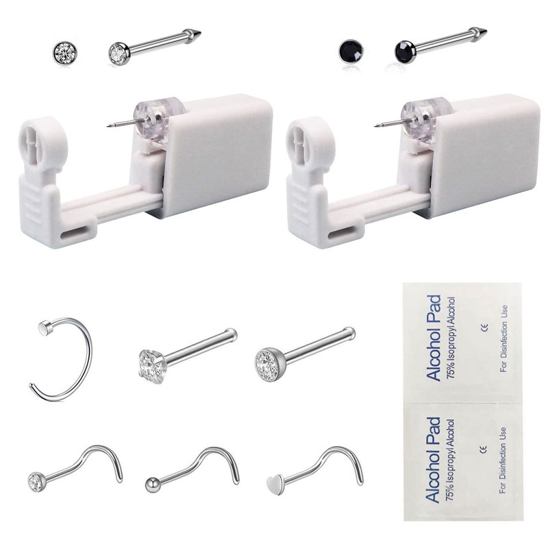 2 Pack Self Nose Piercing Gun Self Nose Piercing Gun Kit Safety Nose Piercing Gun Kit Tool with Nose stud (White)