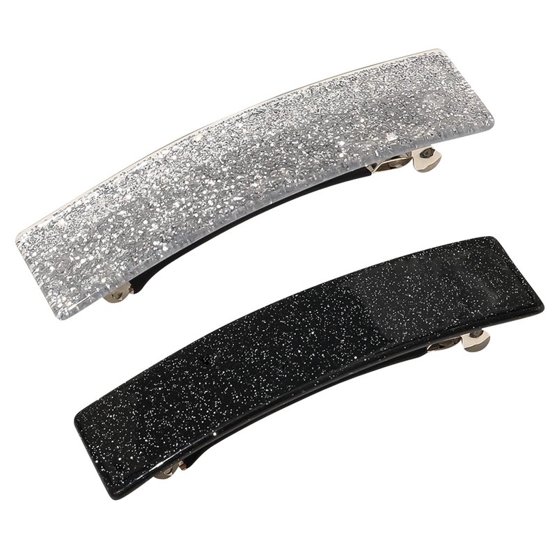 2 Pack Shiny Black and Silver Tortoise Shell Hair Barrettes Acetate Hair Clips Metal Ponytail Holder Acetate French Side Hair Pins Hair Slide Stylish for Fine Hair Women Girl Hair Jewelry Accessories